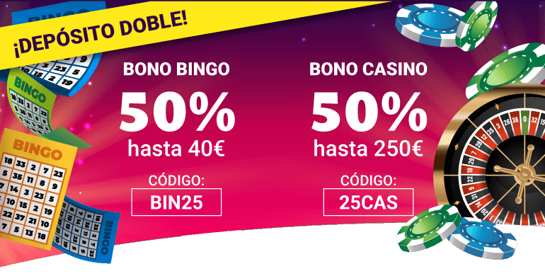 | BIN25 | 20€ o más | 50% | Hasta 40€ de bono bingo |