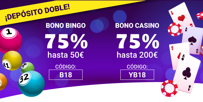 El usuario que realice un depósito de 30€ o más con el código B18 recibirá un 75% extra hasta recibir un máximo de 50€ en bono bingo.