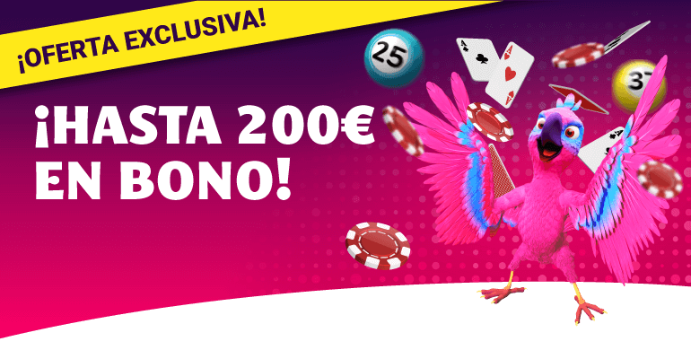 Para participar inscríbete en este enlace y después, por cada 100€ que deposites y juegues en YoBingo recibirás 15€ en Bono Casino y 5€ en Bono Bingo. Pero ¡espera! Podrás realizar esta acción hasta conseguir un máximo de 200€ en tus Bonos favoritos.
