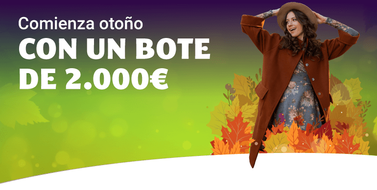 Llega el otoño de nuevo y queremos darle la bienvenida con un bote compartido: Inscríbete primero aquí para poder participar, después deposita 20€ y juega 20€ en nuestras salas de bingo y entrarás en el reparto de un gran bote de 2.000€ en bono de bingo.