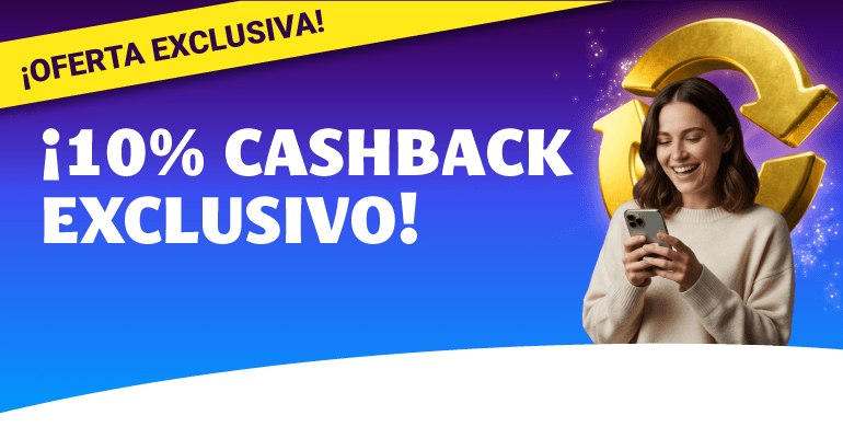 Activa esta promoción y consigue cashback mientras disfrutas de tus juegos favoritos. Puedes llevarte 10% hasta 50€ en Bono Bingo y 10% hasta 500€ en Bono Casino.