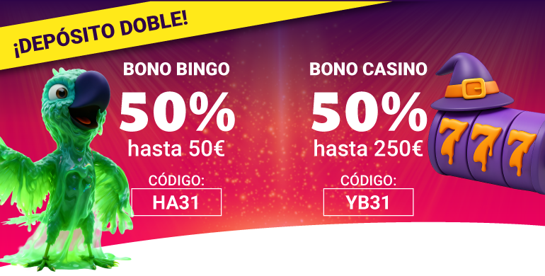 El usuario que realice un depósito de 30€ o más con el código HA31 recibirá un 50% extra en bono bingo hasta un máximo de 50€.
