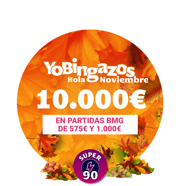 Este 1 de noviembre tenemos una noche con 10.000€ de Bingo Mínimo Garantizado a repartir en SUPER90 a partir de las 21:00. ¡Ven a darle la bienvenida a noviembre junto a los YoBingueros!